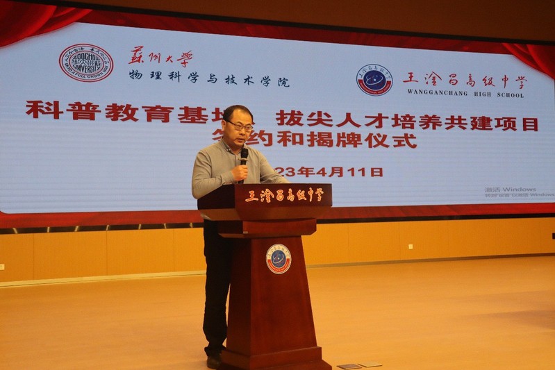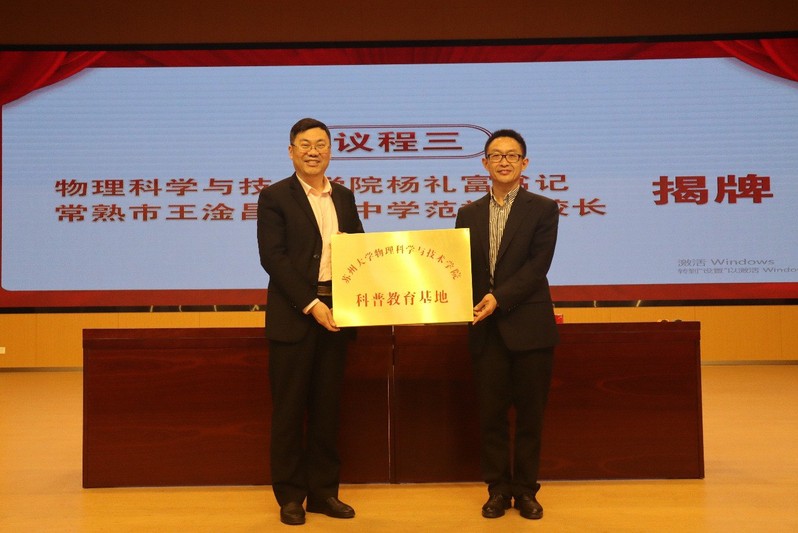为深入学习贯彻党的二十大精神,进一步落实习近平总书记关于“科技创新、科学普及是实现创新发展的两翼,要把科学普及放在与科技创新同等重要的位置”的讲话精神,拓展青少年的科技视野,丰富学生的课外生活,积极发挥学院资源和人才优势,承担社会服务责任,大力弘扬科学家精神。4月11日下午苏州大学黄色直播 与常熟市王淦昌高级中学举行科普教育基地、拔尖人才培养共建项目签约和揭牌仪式。常熟市王淦昌高级中学是以我国著名核物理学家、两弹一星功勋奖章获得者、中国核科学的奠基人和开拓者之一王淦昌院士命名的。