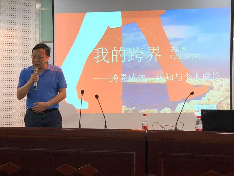 报告中,王振明博士首先阐述了本次讲座的主题——“跨界”的灵感来源,从参加高考实现了从农村娃到大学生的跨界、由于同窗一句话的启发促成了他从本科生到研究生的跨界、得益于当时学校的支持使他从国内到国外求学的跨界、怀着报效祖国的决心使他实现了从科学家到企业家的跨界。王博士指出,跨界无处不在,关键在于自己的决心和意志力,他的成功转型源于他能够时刻做好准备,抓住瞬息间的机遇,勇于尝试和挑战新的领域,能够直面失败的经历并从中总结经验。