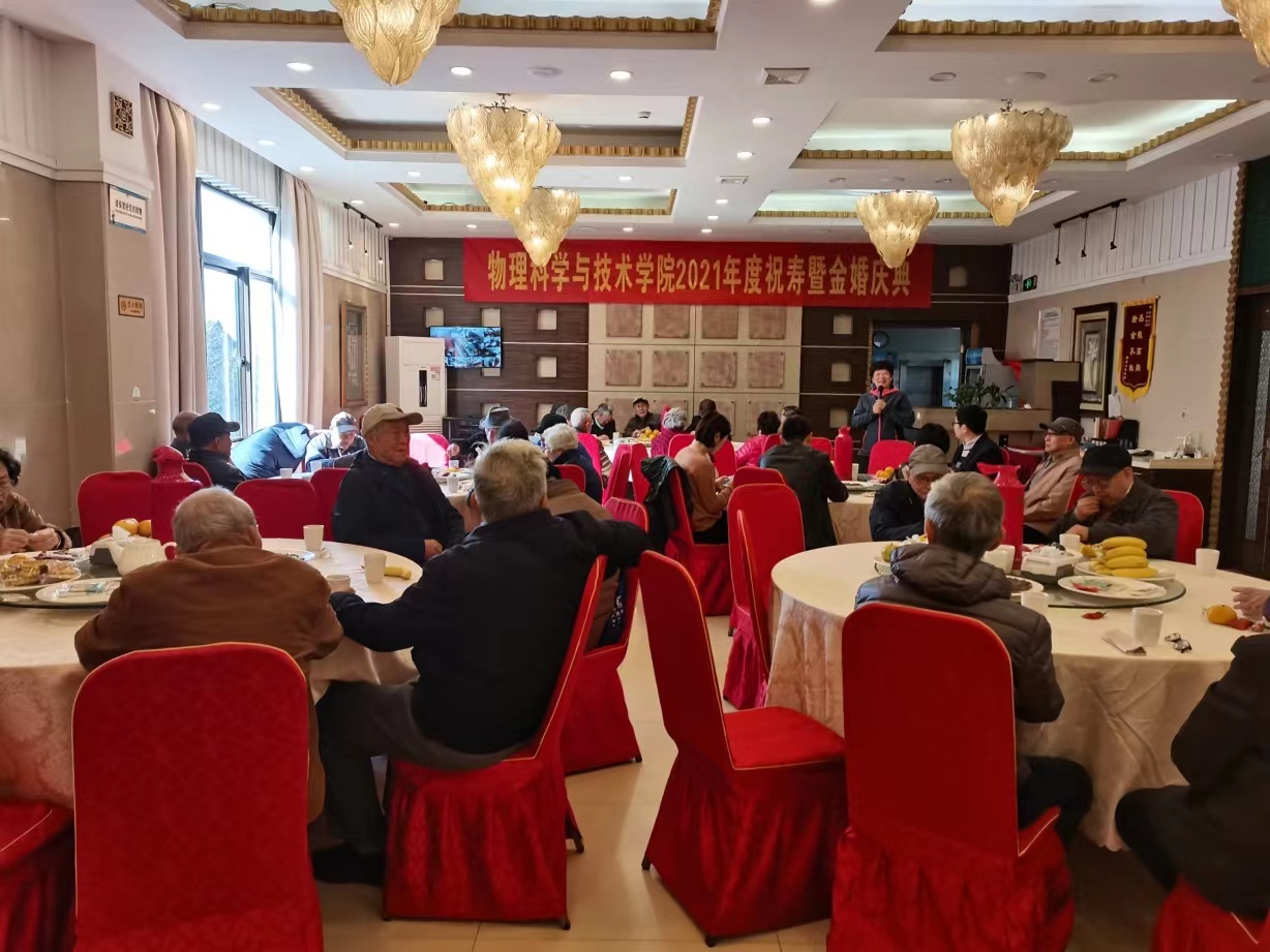 庆典会上,孙书记代表学院党委、行政和学院全体老师向各位寿星们致以最美好的祝愿:祝愿各位寿星们生日快乐、健康长寿、福如东海、寿比南山!祝愿金婚老同志伉俪情深,白头偕老。感谢老同志们的无私奉献为今天物理学院的发展奠定了良好的基础,也希望老同志们一如既往地关心、支持学院的发展。
