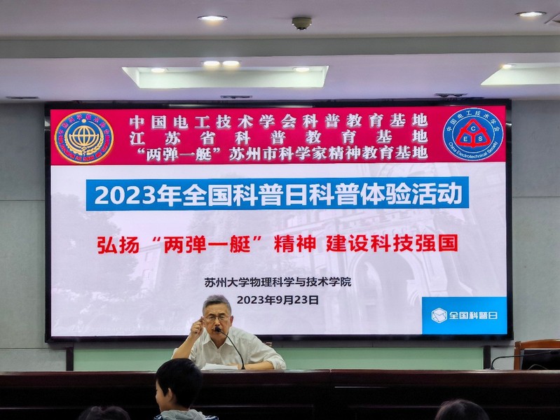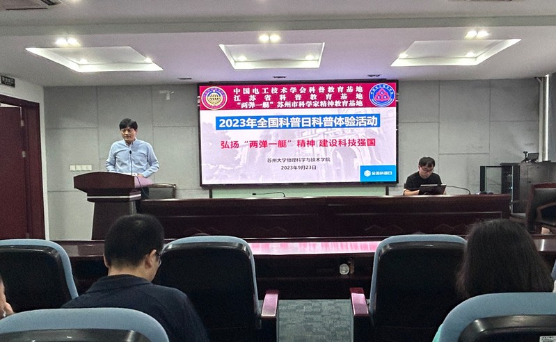 学院高度重视科普工作,积极承担社会责任,先后获批中国电工技术学会科普教育基地、江苏省科普教育基地和苏州市首批科学家精神教育基地。秉承“爱国、创新、求实、奉献、协同、育人”的新时代科学家精神,依托专业优势推进面向全省的科普教育和科学家精神弘扬教育工作,以“弘扬‘两弹一艇’精神 建设科技强国”为品牌,深入挖掘老科学家精神素材,从科学家精神宣讲、物理学相关“课程思政”等方面扎实开展相关活动,探索更多可复制、可借鉴、可推广的科普服务经验。