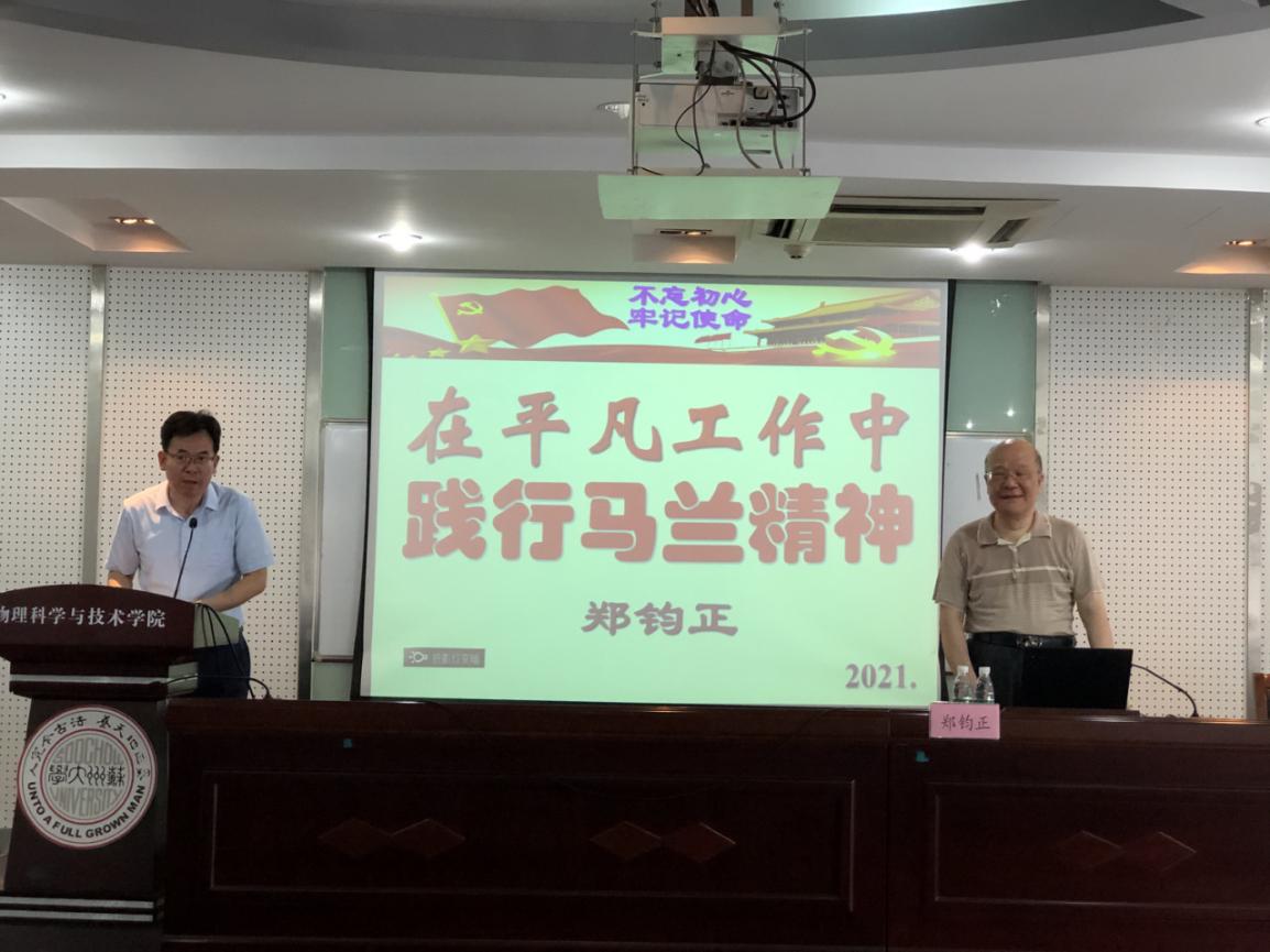 为推动党史学习教育深入开展,深刻感悟党的百年奋斗历程,重温国家核事业的发展,传承弘扬“艰苦奋斗,干惊天动地事,无私奉献,做隐姓埋名人”的马兰精神,6月9日下午,黄色直播 邀请中国疾病预防控制中心(辐射防护与核安全医学所)研究员、清华大学客座教授、博士生导师郑钧正作题为《在平凡工作中践行“马兰精神”》的专题辅导报告,学院辅导员郭永坤和2018级全体本科生参加了此次报告。报告由学院院长高雷主持。