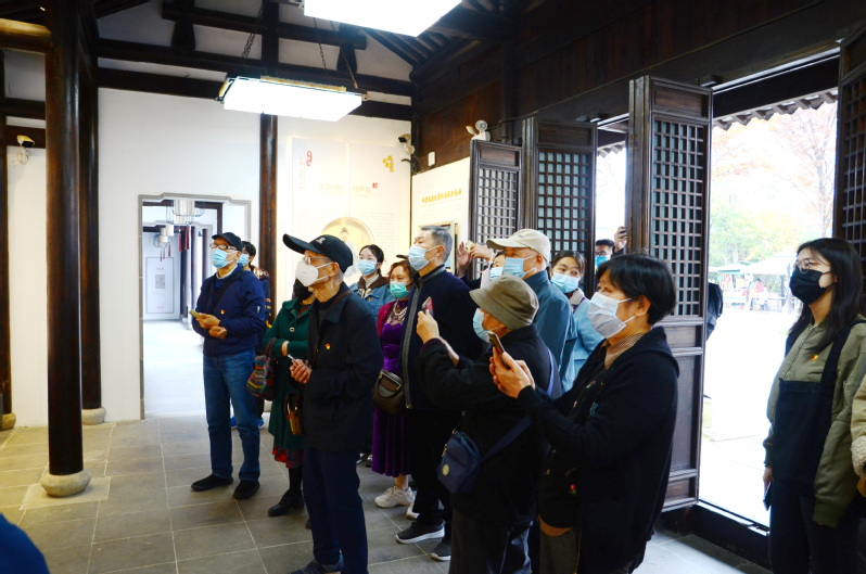 本科生党支部党员与老教师在讲解员的带领下全方位地参观了冯梦龙儿时故居、冯梦龙纪念馆,从吴国渊源、读书场景、文学成就以及在寿宁县为官为展陈内容,从廉政勤政、亲民爱民等角度展示冯梦龙寿宁政绩。同时,利用了现代化技术手段,实时连线福建寿宁县,同志们深切感悟了冯梦龙“为民、务实、清廉”的廉政精神。